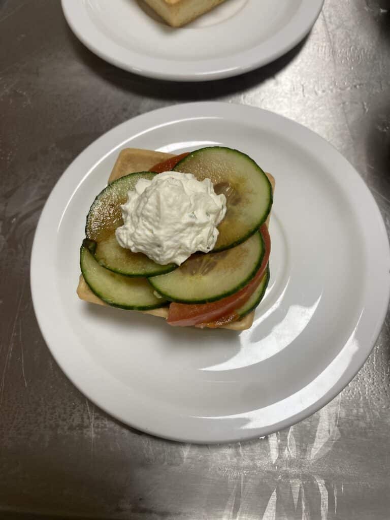 Avec les restes alimentaires, les élèves de T CAP PSR ont préparé et proposé à la vente des tartelettes salées, notamment thon-concombre et tomate.